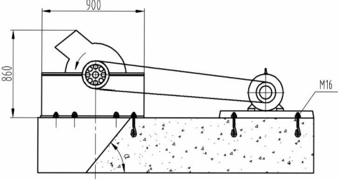 2.The machine is fixed on the concrete by foundation bolt.Minerals discharge channel should be remained when the foundation is designed.Its inclination should not be less than 50°,but can be decided by users according to feeder and conveyor.